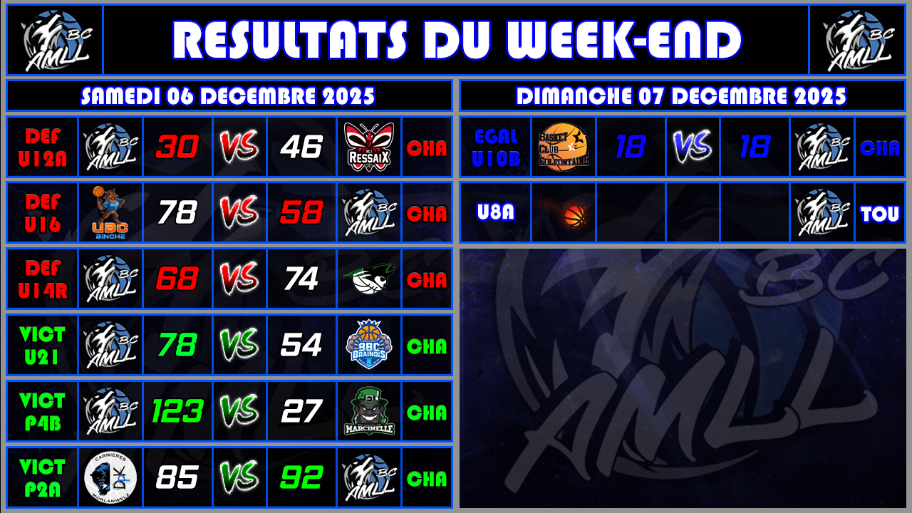 RESULTATS DU WEEK-END DU 06 & 07 DECEMBRE 2025