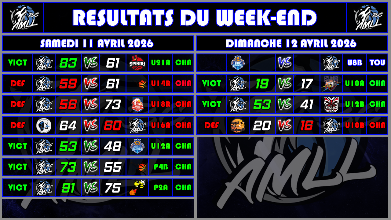 RESULTATS DU WEEK-END DU 11 & 12 AVRIL 2026