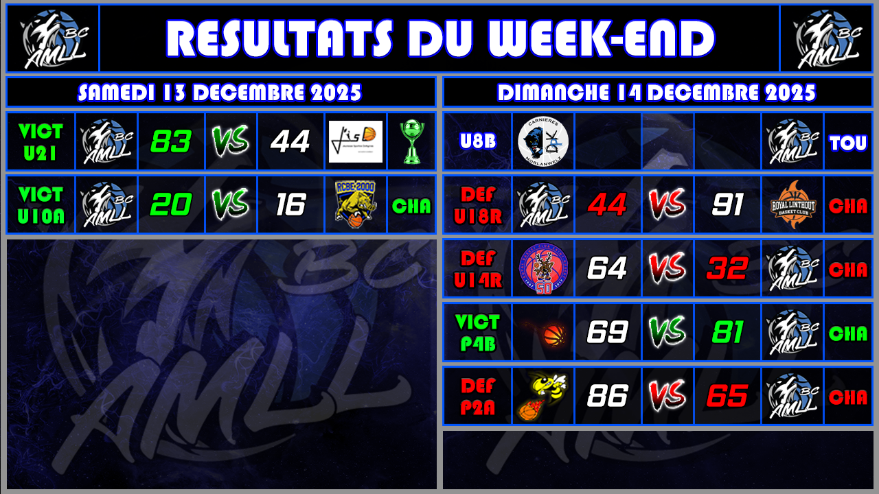 VOICI LES RESULTATS & DEBRIEFING DU WEEK-END DE NOS EQUIPES