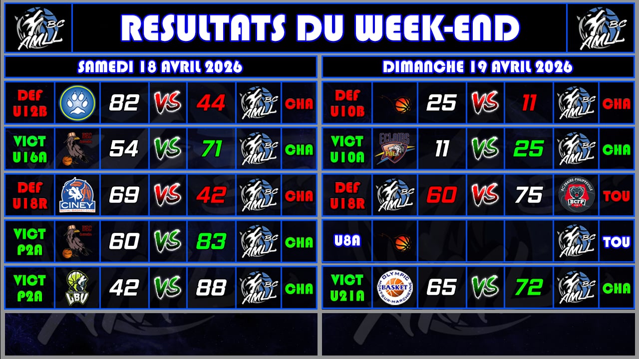 RESULTATS DU WEEK-END DU 18 & 19 AVRIL 2026