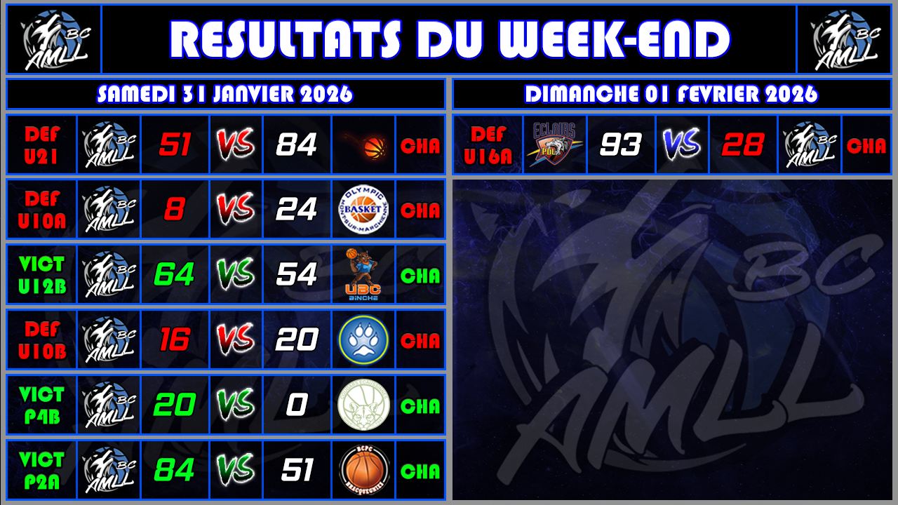 RESULTATS DU WEEK-END DU 31 JANVIER & 01 FEVRIER 2026