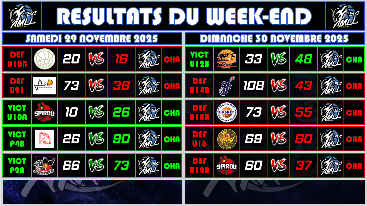 VOICI LES RESULTATS & DEBRIEFING DU WEEK-END DE NOS EQUIPES
