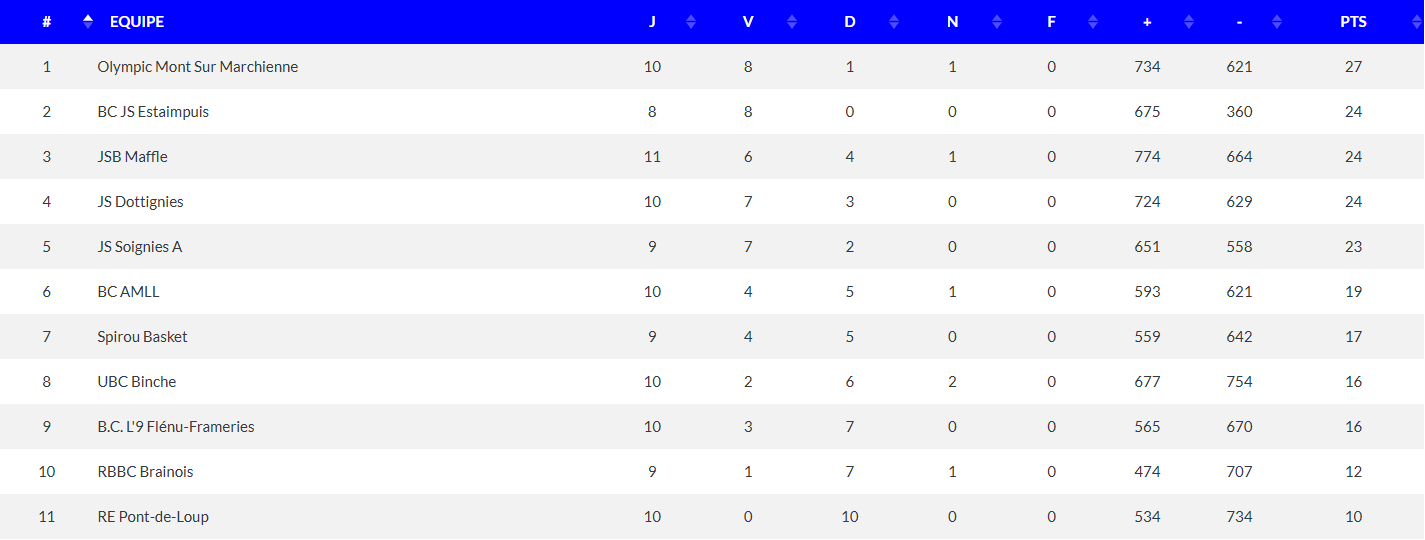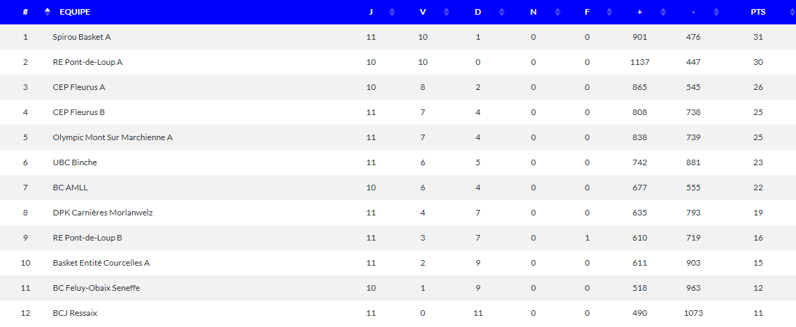 CLASSEMENT U18 AWBB 25-26