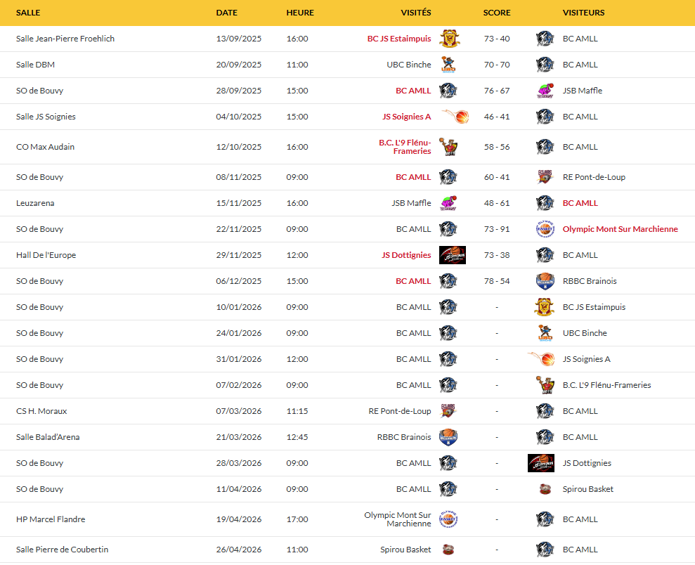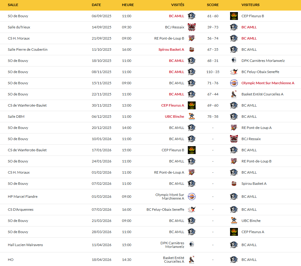 CALENDRIER U18 AWBB 25-26